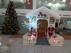 Comes with just the inflatable grotto, with an electric fan to inflate it with. This Christmas Grotto is suitable for indoors and outdoor use and can go on any ground surface.